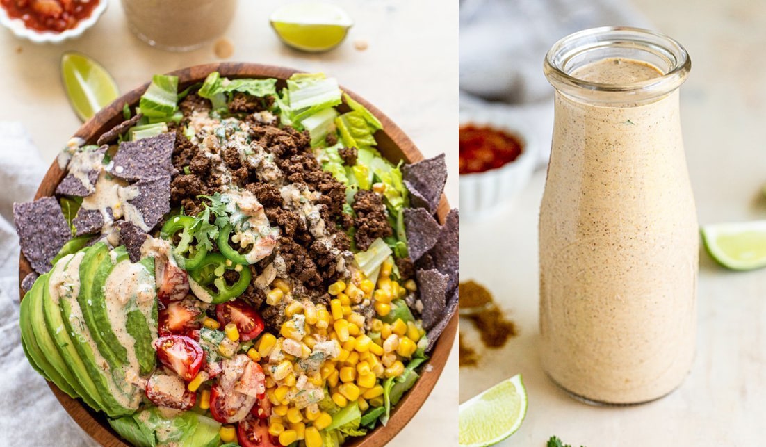 - About 1/3 Cup Healthy Taco Lime Greek Yogurt Dressing (or dressing of choice)