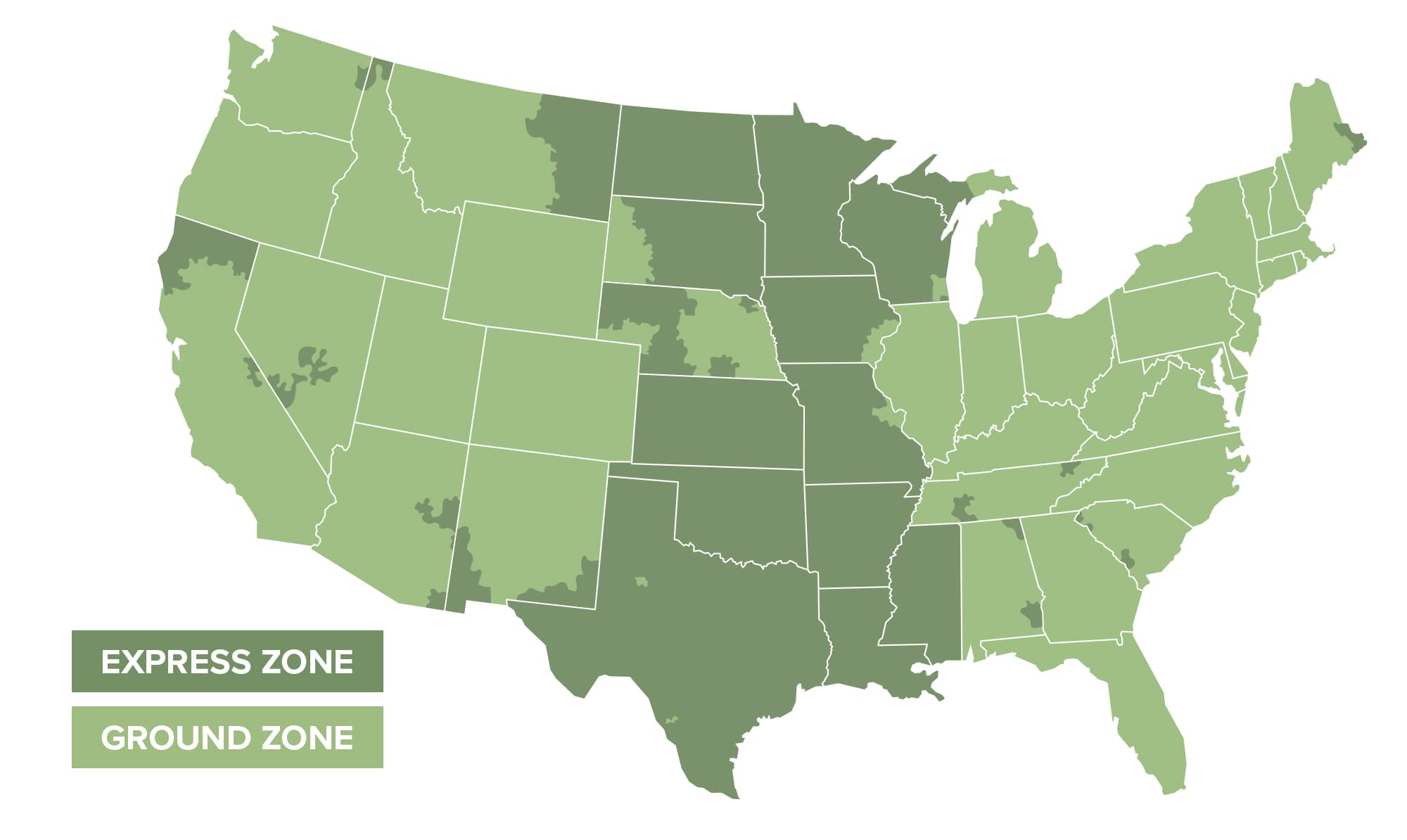 | Your Order Total | Ground Zone (1-3 Days) | Express Zone (2-3 day Air) | Overnight (Available Nationwide) |