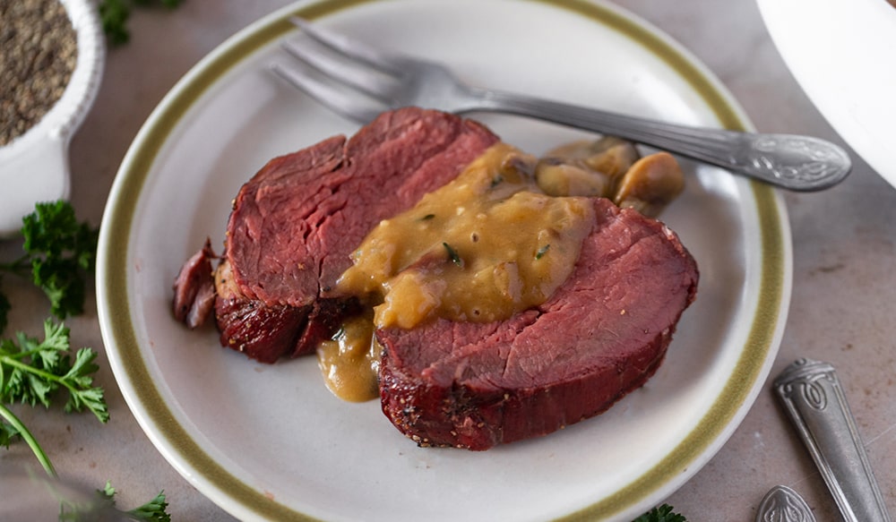 Smoked Bison Tenderloin with Porcini Mushroom Gravy
